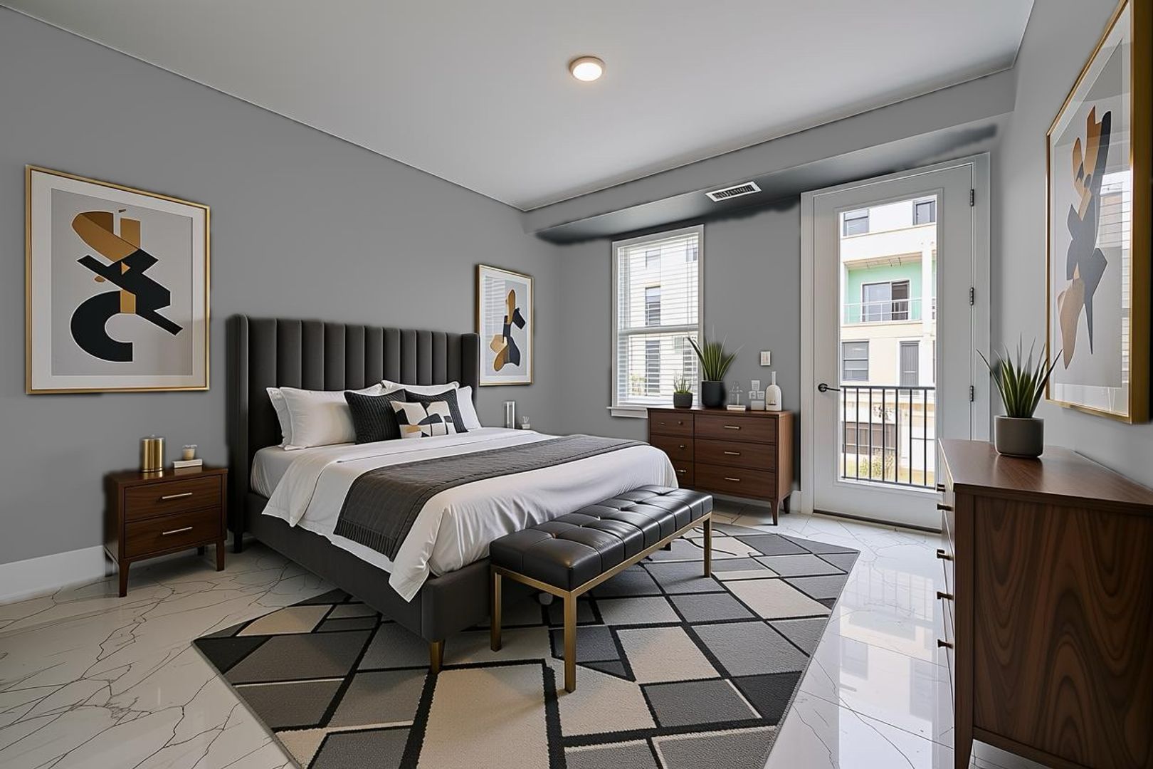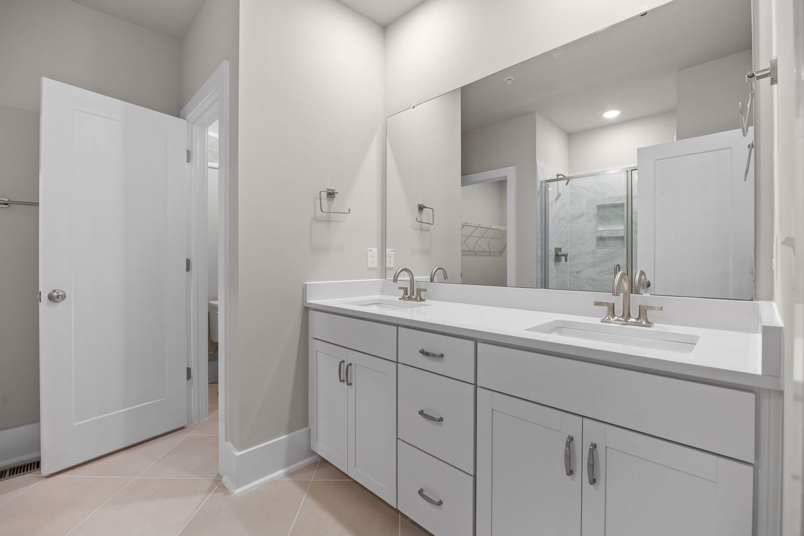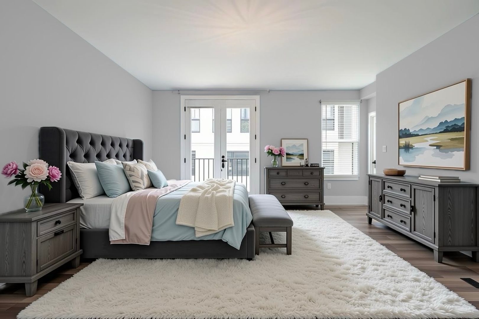 The large primary suite has ample space for a king-size bed and furniture, and the dedicated ensuite includes double sinks, stone counter tops, walk-in shower and linen closet.